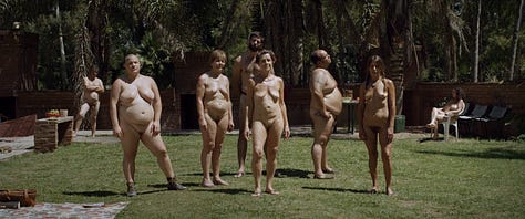 At first, it feels like this may not be the community for her either: the members here are certainly nudists, but they are openly sexual swingers, holding tantric sex lessons and erotic poetry sessions outdoors, with Belén later running across a man masturbating alone. Definitely not what real naturist clubs are like and more of what outside people suspect goes on, which made me feel a little uneasy. Despite the discomfort this initially causes in her, she returns whenever the family she works for goes off on an athletic trip. We see her truly happy here, and she becomes more and more distant from those on the other side of the fence.