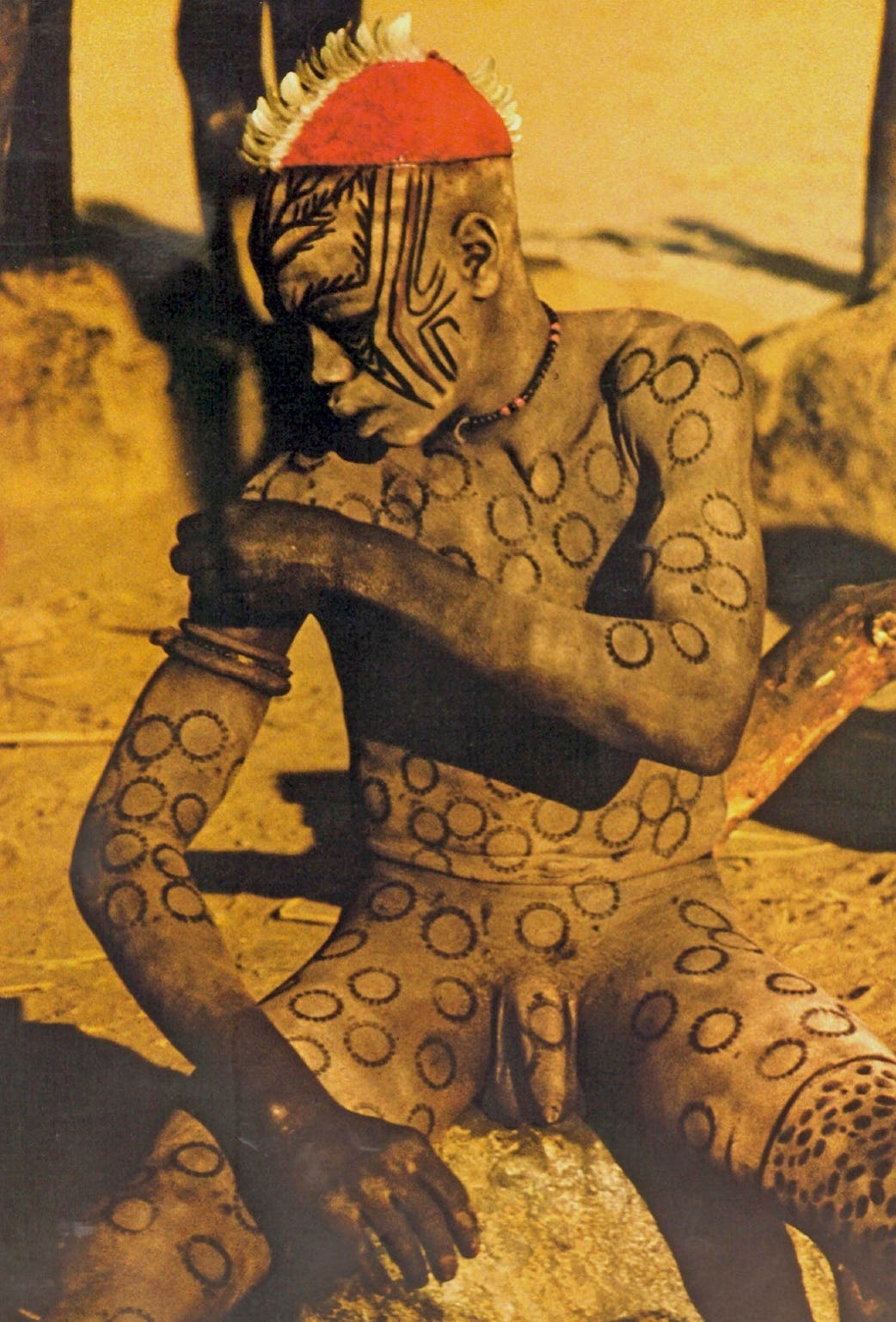 Art among the Nuba took the form of body painting. When Riefenstahl showed an interest in this art, the young men began changing their decorations several times a day. The astonishing array of designs at their command meant that the photographer sometimes failed to recognize a man she had spoken to just a few hours before.