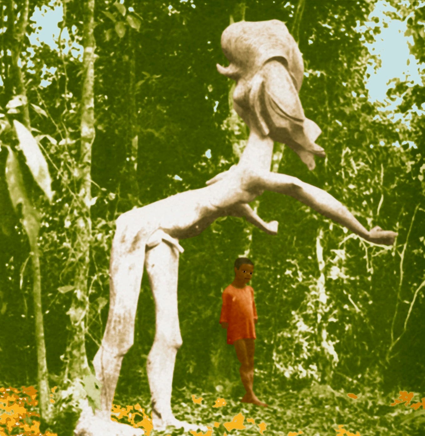 Among Wenger's Islamic assistants, Adebisi Akanji has created remarkable walls of (clothed) cement human figures—both for the Yoruba temples and to screen off the Esso gas station. (Some of Africa's most exciting architecture finds expression in its gas stations. The Total station in Nairobi is another one not to be missed. Nothing needs to be ugly.) Alajere, god of fire, change, and unpredictability, had been all but forgotten at Oshogbo until Wenger rebuilt his shrine. Now a nude flame-haired statue of Alajere rises above the cliff overlooking the river, doing an ecstatic dance of welcome (at a respectful distance) for his opposite, Oshun, great goddess of childbirth and water. On another level, this cosmic attraction of opposites can symbolize the marriage of artistic inspiration and the spirit of traditional Yoruba religion in Wenger's own work.