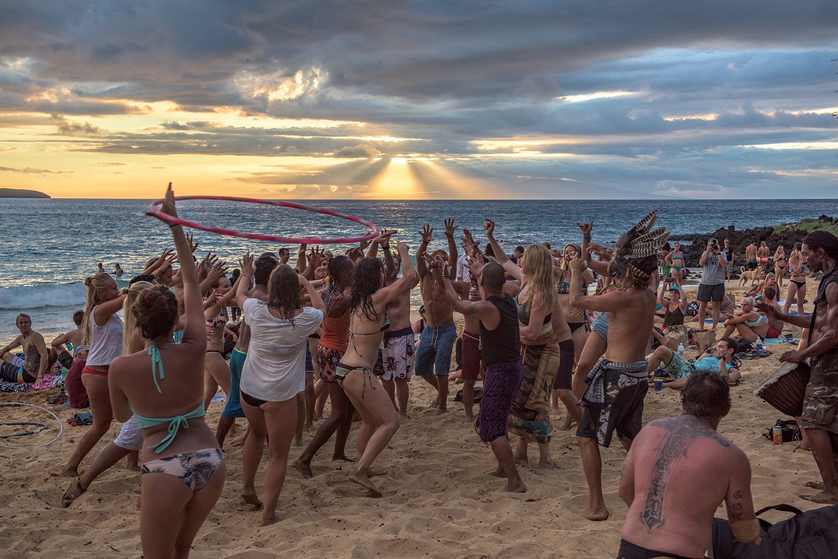 Nude sunbathing at Little Beach goes back to at least 1969.1 The beach is remote and isolated, making it difficult to access and out of view of the public. The beach's geography, surrounded by a steep cinder cone and the Pacific Ocean, makes it difficult for outsiders to stumble upon it. Despite this, Little Beach has drawn people from all over the world. It's been estimated that an average of 300 people visit Little Beach every day, with roughly 50% of them going nude. Little Beach's status as an inclusive clothes free space has also contributed to its popularity among the LGBTQ+ community. Over more than thirty years, roughly three million estimated day-visits occurred with no complaints and no citations issued. Despite this history, since the COVID-19 pandemic, park management has ordered the DLNR police to begin cracking down on some of the activity there.