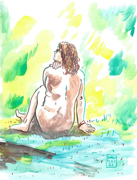 What draws me to Brett's work is the nuance and complexity of their perspective on nudity and its aesthetic representation. Brett's art honors the human form and nudity, using it to portray empowerment and human connection in a way that is compelling and thought-provoking for naturists and non-naturists alike.