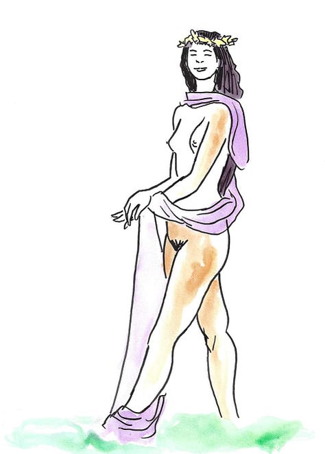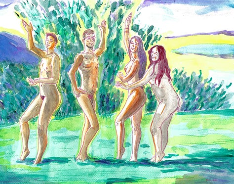 There have been life-changing moments within Defining Bodies too, like how modeling in stockings for the first time helped me realize I'm nonbinary, and getting to draw outdoors on a private farm and dance nude in the sun with friends was my first true communal nudist experience. A few of us actually missed drawing a pose because we were having so much fun dancing!