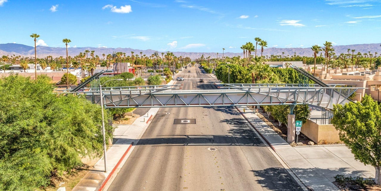 One iconic feature of the resort is the Lee R. Baxandall Bridge, affectionately referred to as the "naked bridge" or "Bridge of Thighs." This distinctive pedestrian bridge was built in 2003 and was designed to conceal the unclothed pedestrians who crossed it from the drivers on the busy public Palm Springs road below. The bridge was named in honor of The Naturist Society founder Lee Baxandall, and became a symbol of Desert Shadows and later Desert Sun Resort, offering a unique gateway to guests, visitors, and residents, and adding a distinguishing feature to the city and community of Palm Springs.
