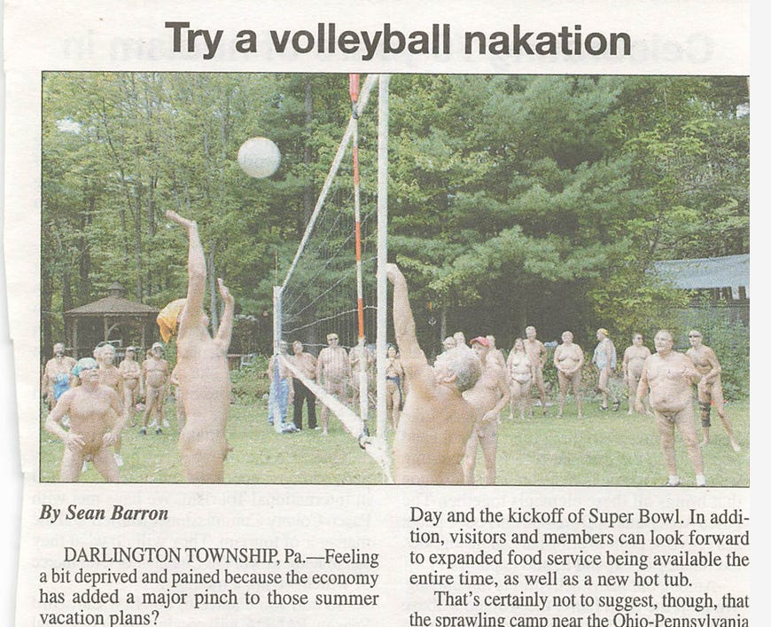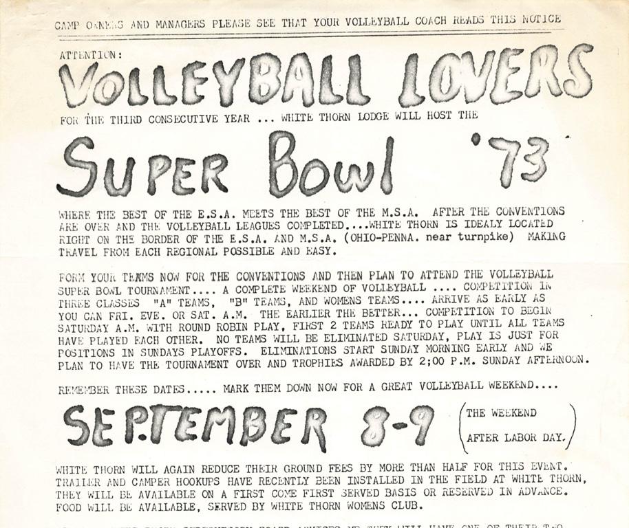 When White Thorn Lodge first opened its gates in 1961, it was just 106 acres of reclaimed strip-mined land in the hills of western Pennsylvania. Like many nudist clubs of its era, volleyball quickly became a favorite pastime. But in 1971, two members, Betty and Wayne Alwine, proposed something new: a tournament to crown a champion on neutral ground. Inspired by the NFL’s recently minted Super Bowl, they dubbed it the Superbowl of Volleyball.