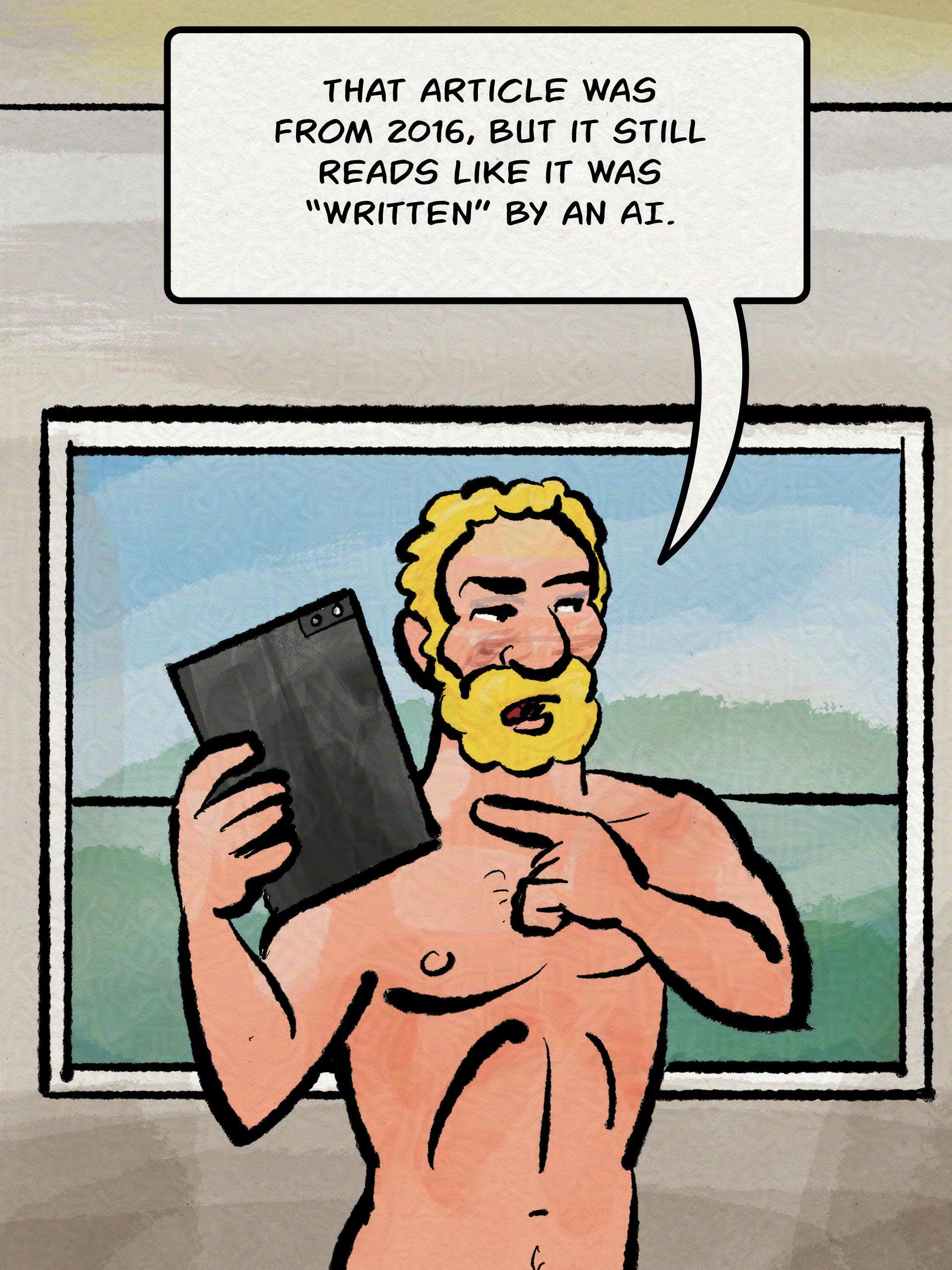 Use when: someone shares media coverage that includes nudity, but it's poorly written, not really that positive or otherwise not worth reading.