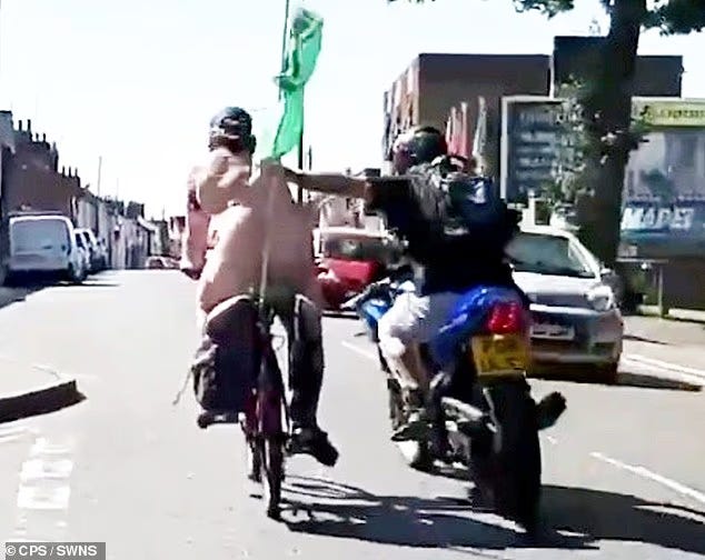 During a World Naked Bike Ride event in Colchester, UK, last summer, a nude cyclist named Robert Brown was violently attacked by a man on a motorcycle who “mistook” the ride for public indecency. The attacker, Lee Turnage, a local sanitation worker, punched Brown off his bike and later assaulted two responding police officers. He has since received a suspended 14-month sentence. Brown sustained serious leg injuries and says he continues to suffer from pain and reduced mobility.