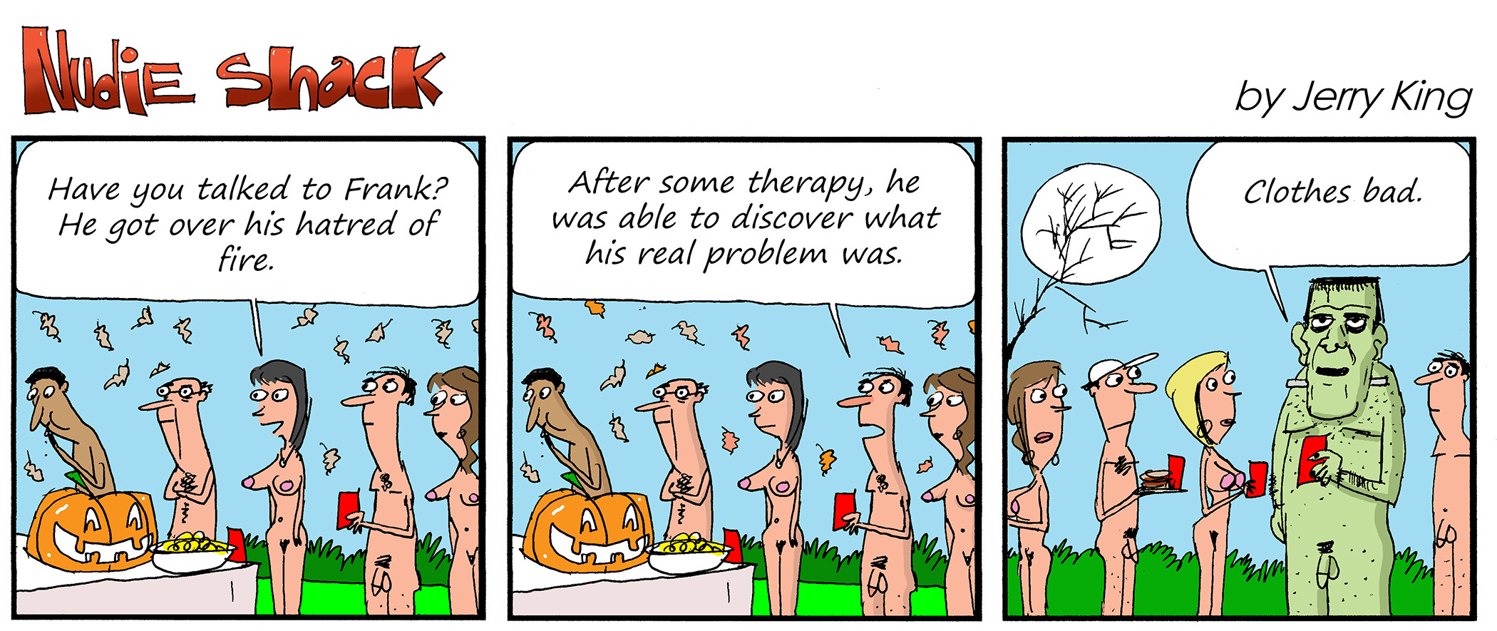 Nudie Shack is a cartoon series by legendary humorist Jerry King, set in a delightfully unhinged nudist resort where the only thing looser than the dress code is the punchline. Known for his prolific work with Playboy and other major publications, King brings his decades of cartooning chops to the naturist world, populating it with oddballs, eccentrics, and sun-loving weirdos who always find new ways to bare it all—sometimes literally, sometimes emotionally, and usually for a laugh.