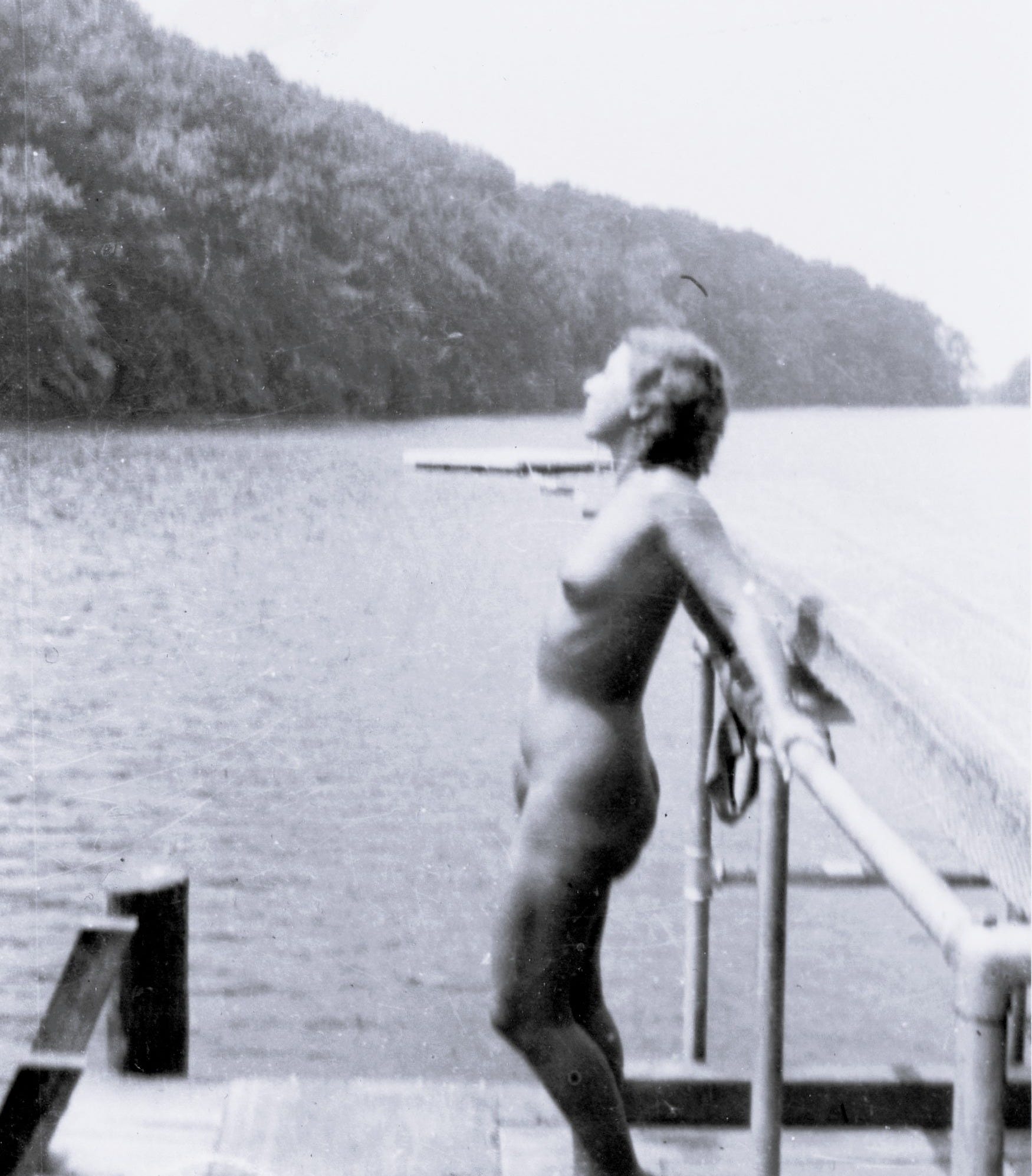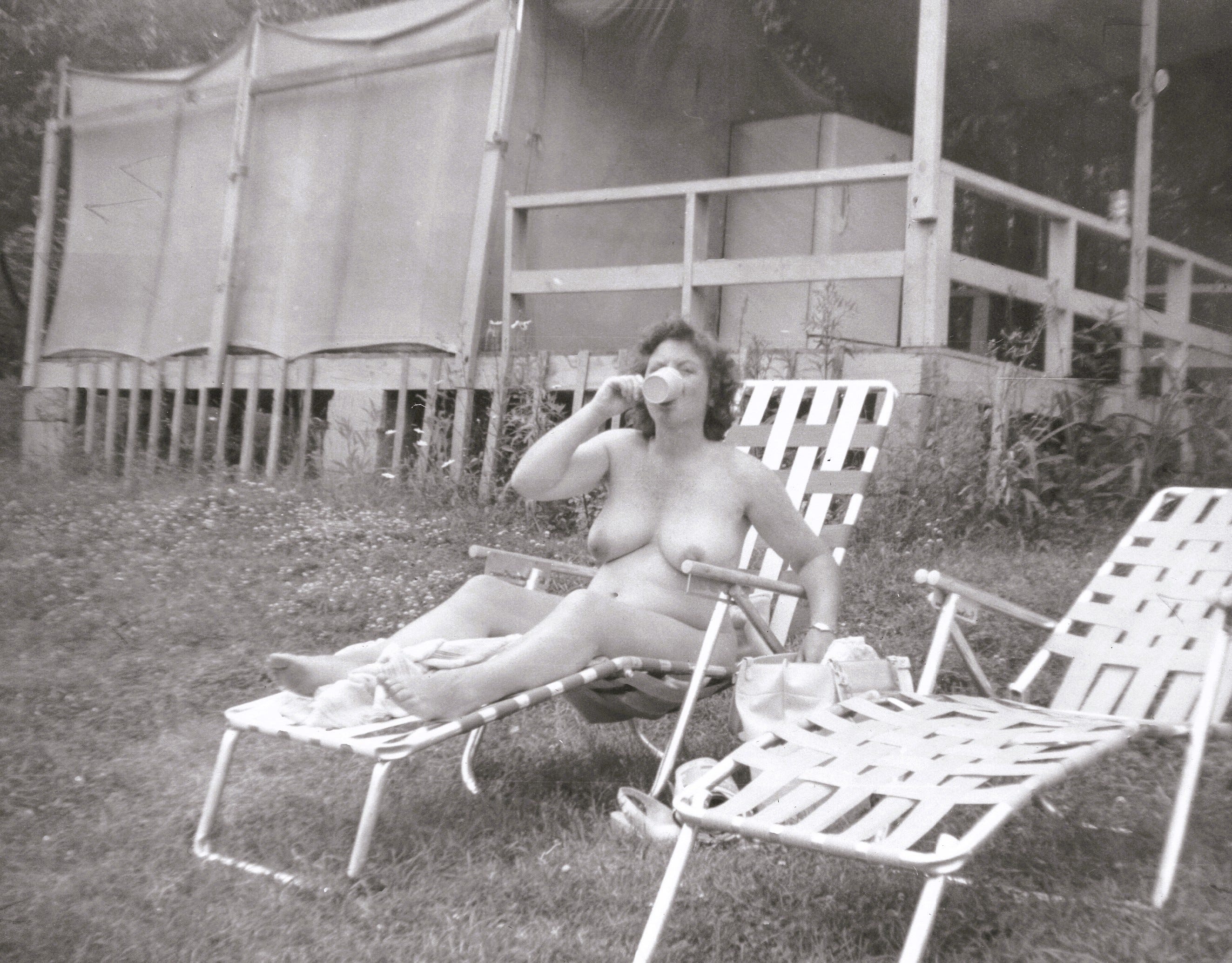 Then, a couple weeks ago, I came into possession of another stash of photos — mostly Lake Como scenes, but others were clearly taken at unidentified nudist camps. It was like a mystery novel. I identified shots from Fernglades in Massachusetts and PennSylvan in Pennsylvania by spotting the same naked woman in both pools. Then there were three photos by a lake with naturists on a diving board.
