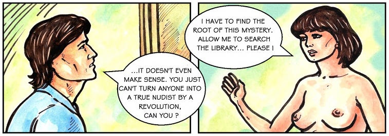 A twist-filled webcomic and the questions it raises about nudist storytelling
