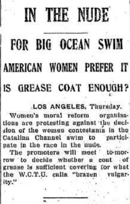 Before you state that his comment does not imply that one could swim the 22 miles nude, think again. There are countless articles about this one-of-a-kind event that collaborates with nudity, I will just include a single one from Australia.