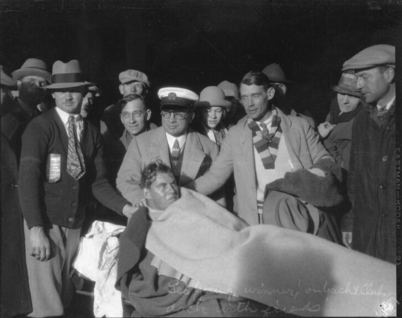 149 people entered. Over 100 swimmers, covered in grease, animal fat, and oils of all kinds, thought to have thermal properties, started in the water at 11:21 am on Saturday, January 15, 1927. Mack Sennett’s famous “Bathing Beauties” (who were definitely clothed) were on hand for the big send-off.
