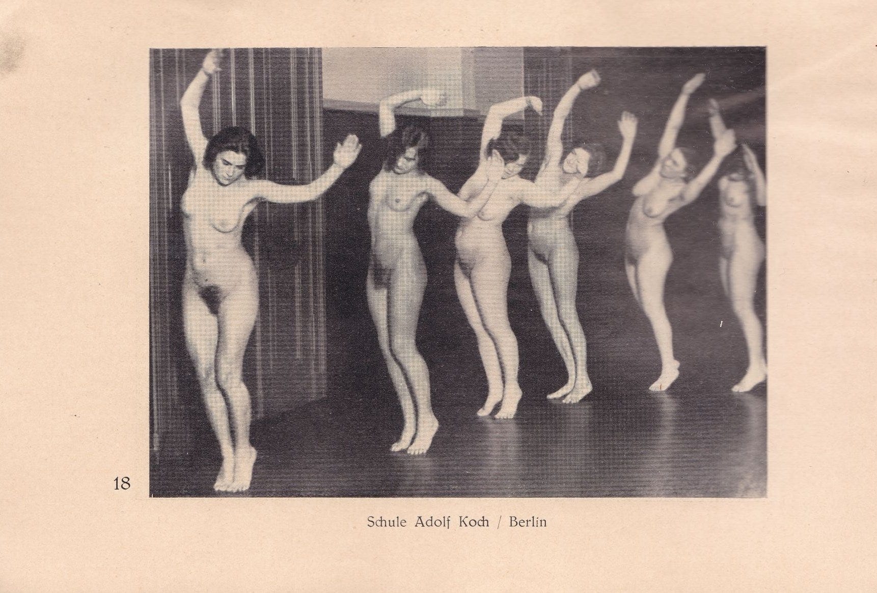 Adolf Koch was the most influential figure in early nude gymnastics. He came from the socialist left, and his schools were explicitly working-class institutions, holding nude gymnastics sessions across thirteen branches in Germany by the late 1920s and enrolling thousands. In 1929, his Berlin school hosted the first International Conference on Free Body Culture, drawing 200 delegates from 23 countries. The Rhönrad, already well established in German gymnastics culture, was adopted into this world—performed at FKK gatherings, youth camps, and INF congresses through the postwar decades, documented in publications like Licht und Schönheit and Die Neue Zeit.