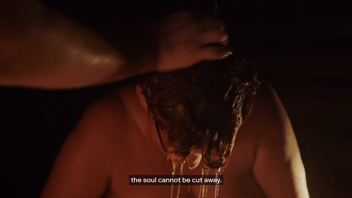The movie is shot in a very unique manner: the sauna is always dark, and the camera is intimately close to the women as they sweat, scrub, and speak in close proximity to each other. You hardly see the faces of whoever’s speaking throughout. More often you see the others listening and reacting. Body language is sometimes all you have to indicate who is talking with who, and yet even with faces cropped out, it never feels objectifying towards these women. Their bodies occasionally feel more abstract, especially in how they overlap in close quarters. Shots are long, with only a little bit of handheld movement, but never voyeuristic or creeping. You’re in the sauna with them, listening as they tell their stories. There are times where you can’t tell if a drop on someone’s face is sweat, water that’s been poured over them, or tears. It could well be a combination of any of them, considering the emotional intensity coinciding with the sauna’s heat and humidity.