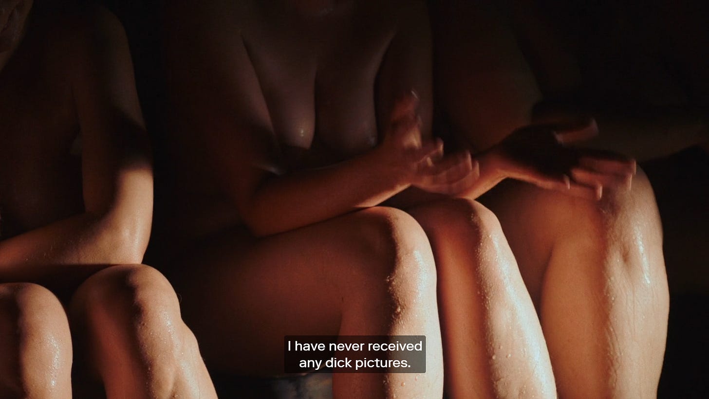 The intimate sisterhood on display here is something I personally find myself craving as I transition, but have been afraid of admitting that I desire. I see female friends doing group activities together, nothing like this of course, but going out together for spa days and things like that, and wish I could be invited. I don’t know if I’d be able to go, if I’d feel comfortable. I know I’m not a woman, even as I’ve doubled my estrogen to change my body further. I know I’m nonbinary, I know I will never experience anything in ways these women have. It feels wrong to even admit to wishing for this level of feminine connection. But I have to mention it all the same. Identity is often more complicated and stranger than you expect. If nothing else, I can be vulnerable myself as these women are in whatever ways I can.